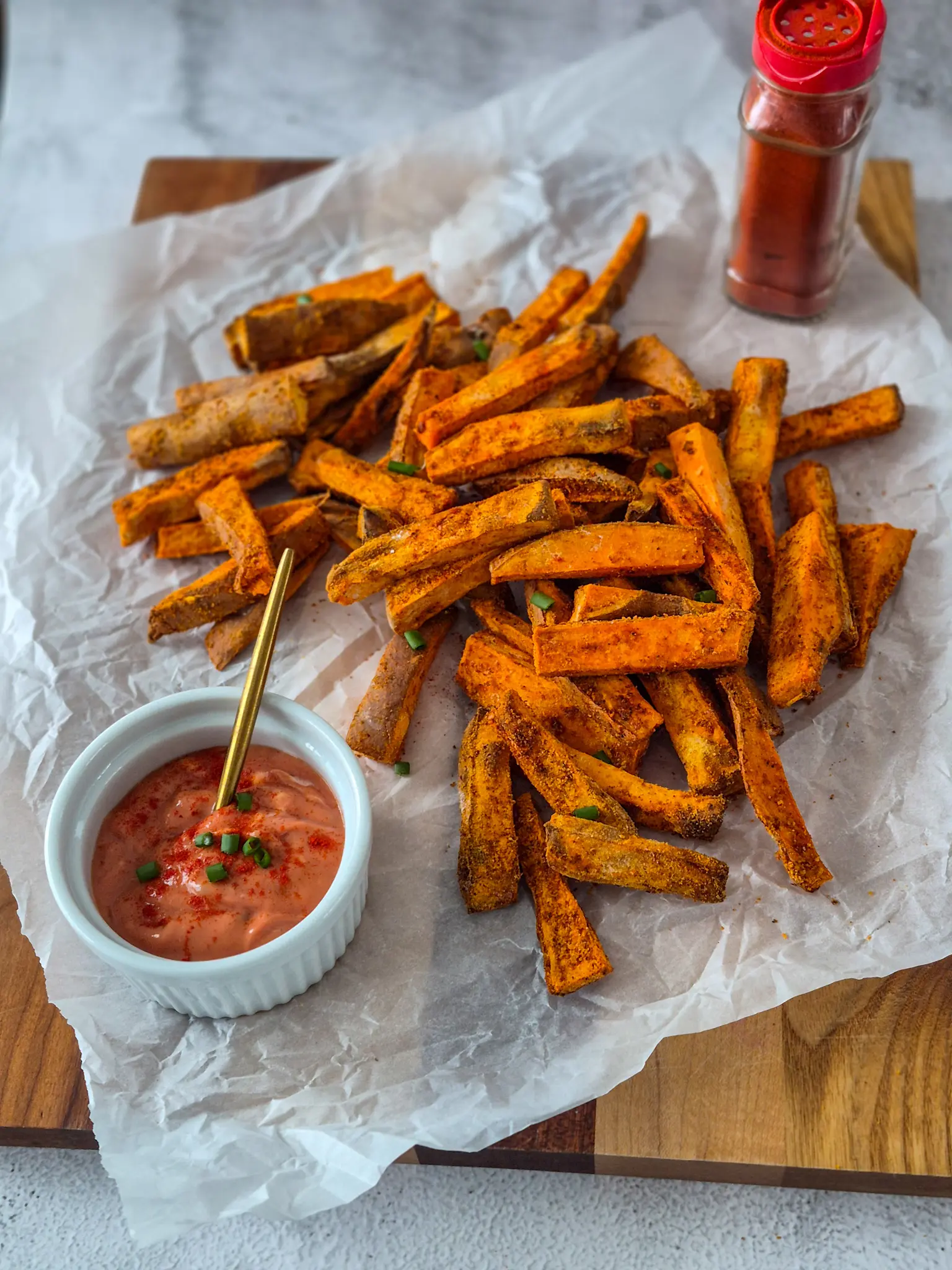 - 600 g (about 2 large) sweet potatoes*, cut into sticks