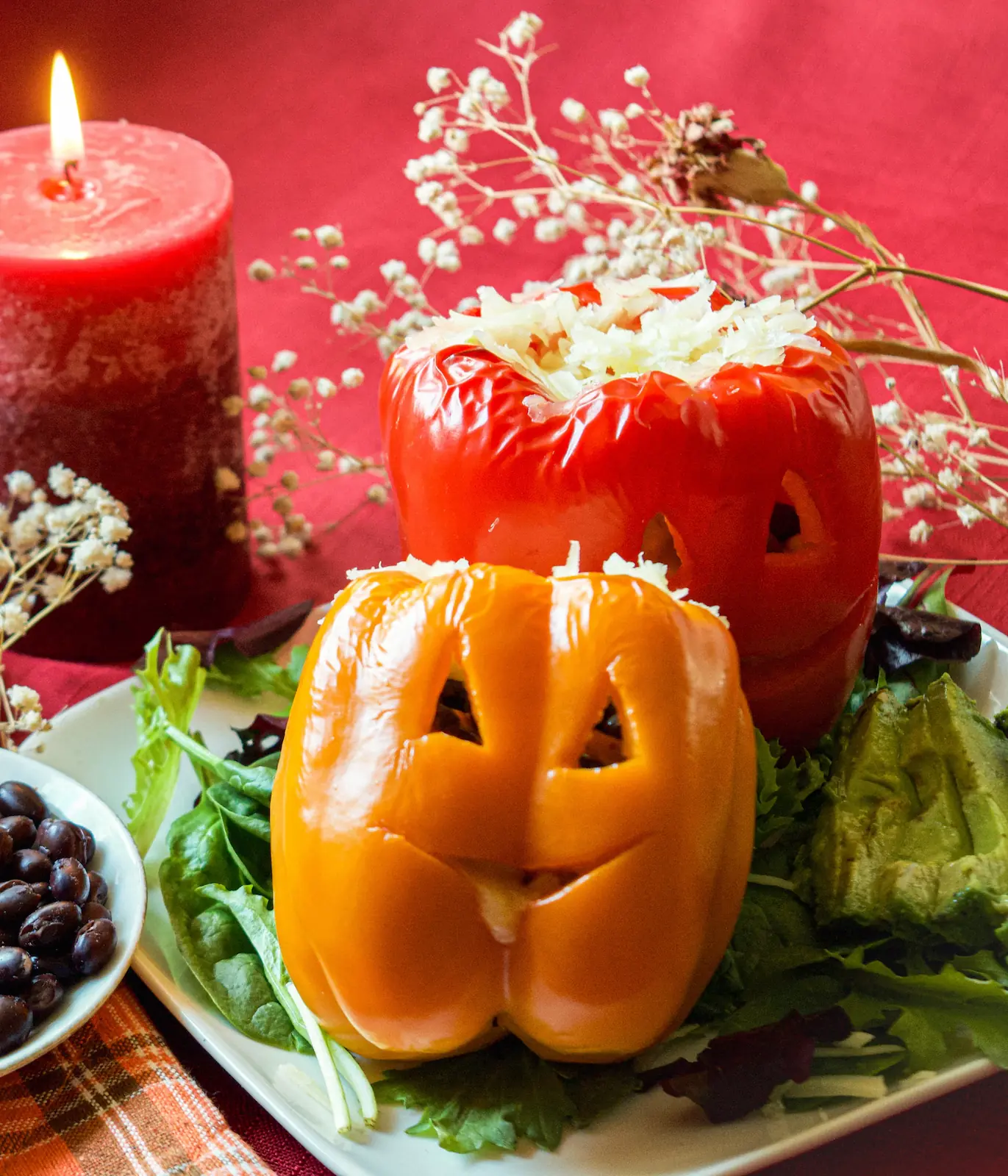 Summon the Halloween spirit with our Tofu, Black Bean, and Cheese Stuffed Halloween Peppers recipe. A balanced and delicious combination for a spooky celebration. Frighteningly tasty for the whole family!