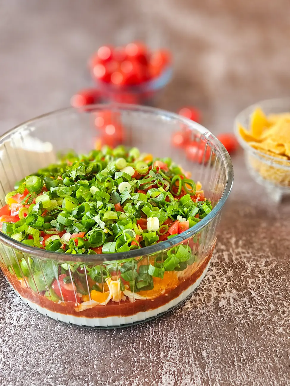 Here’s a simple and colourful dip made with light ingredients, created by a dietitian. It’s the perfect option for a hassle-free appetizer or a fun night with friends. We love its creamy texture paired with the freshness of the vegetables. Enjoy it with corn chips or whole grain crackers! For more ideas, check out our 3-Way Greek Yogurt Dips.