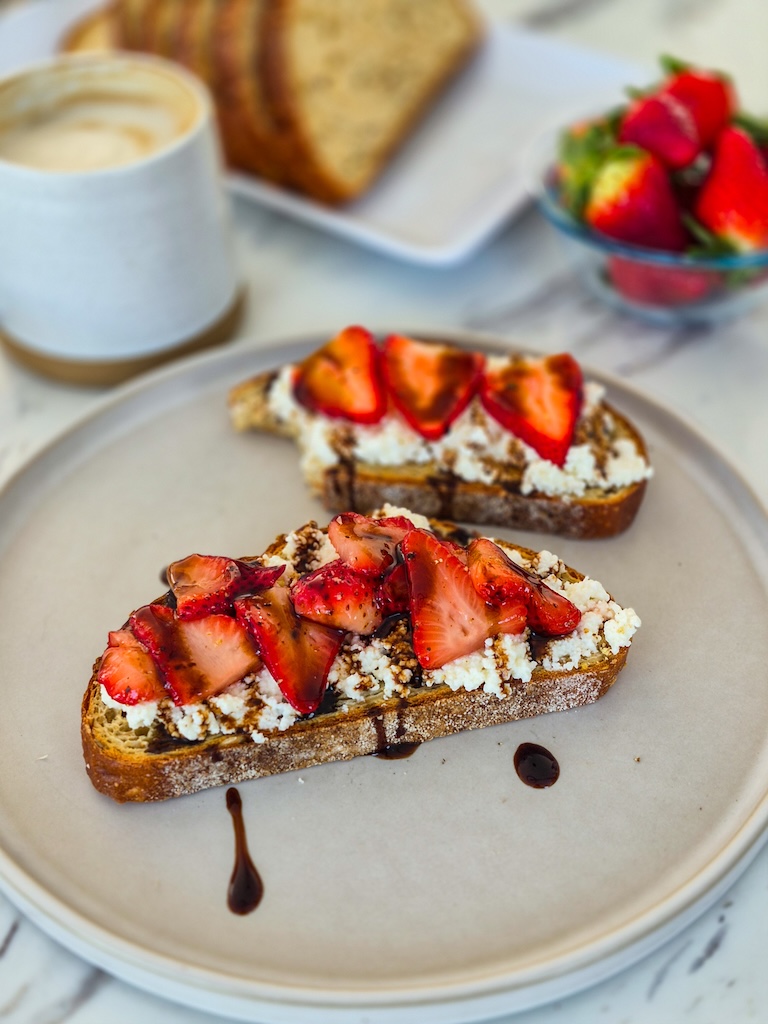 This colorful toast highlights Quebec strawberries, combined with creamy ricotta cheese and a touch of freshly ground black pepper. It offers a perfect balance between sweet and savory. Ideal for brunch or a satisfying snack, this simple recipe comes together in just a few minutes with minimal ingredients. A dietitian-approved option! To mix things up, also try our Avocado Toast with Cottage Cheese.